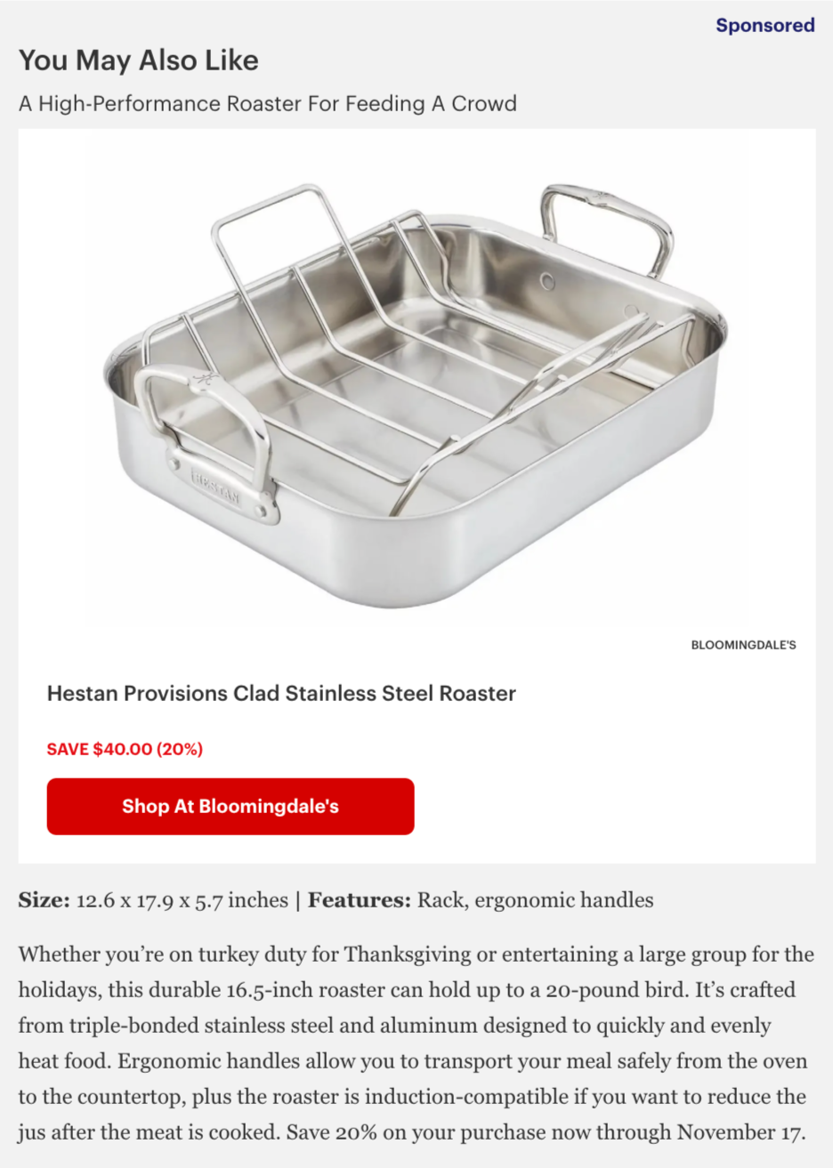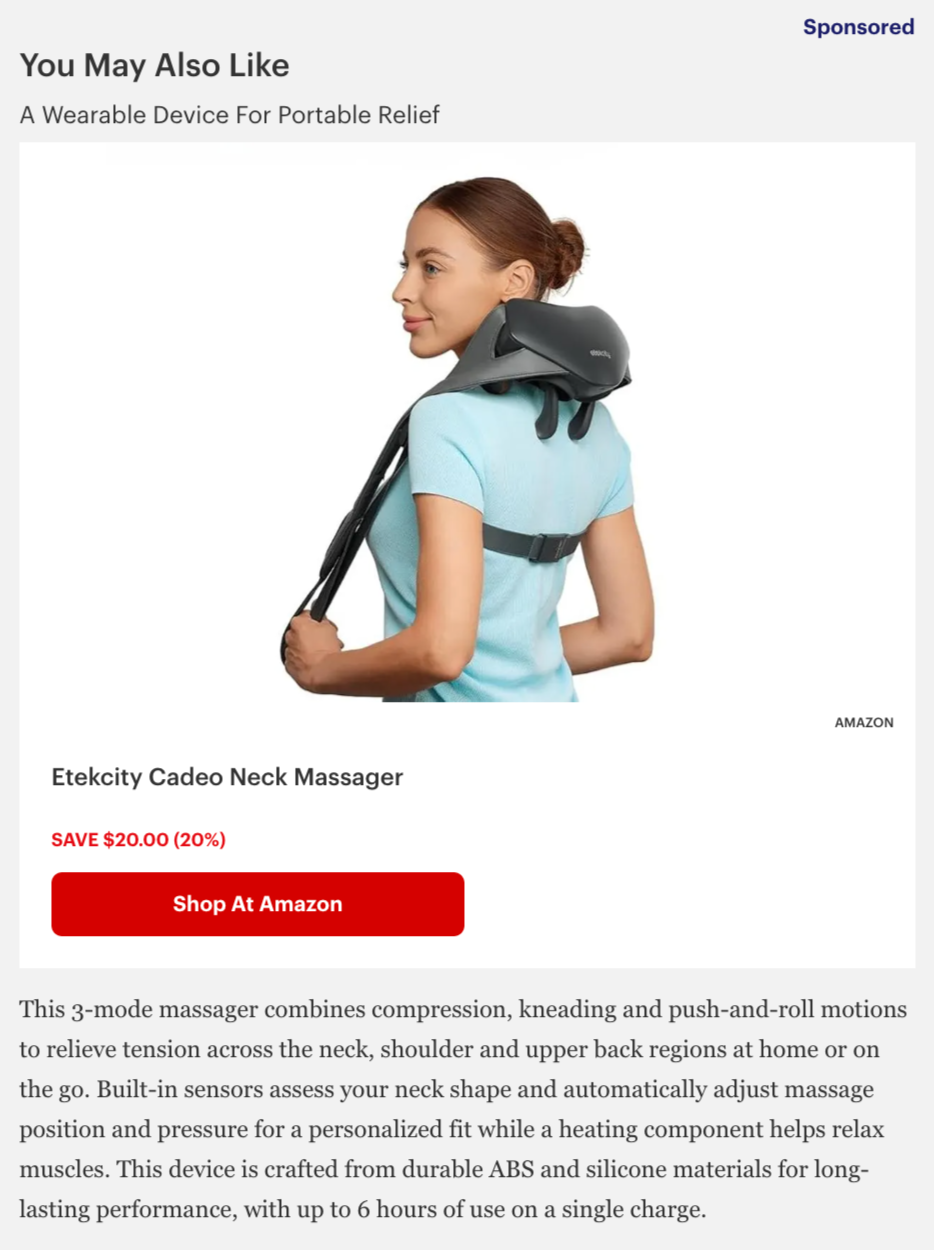 I research article pageviews and sales using Looker to find where to place native ads; communicate with section editors to determine editorial alignment and plan article updates; write and edit native ads; and build them within a custom CMS.